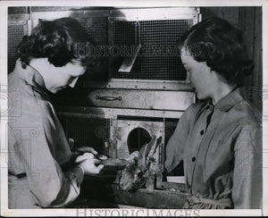 1950 Press Photo Dorothy Hoy & Mary Stanng Invent Device to Hold Animal Still