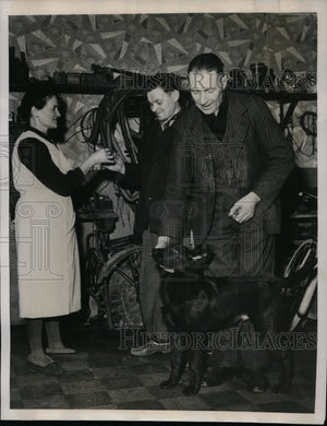 1949 Press Photo Jules Hochepied Repairs Bicycles & Trains Police Dogs