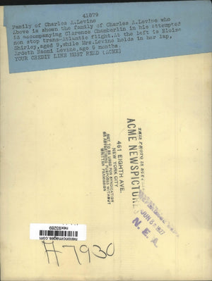 1927 Press Photo Family of Charles Levine Pilot on Transcontinental Flight