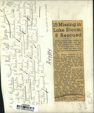 1938 Press Photo 15 Missing & 8 Rescued from Lake Erier After Freighter Sank