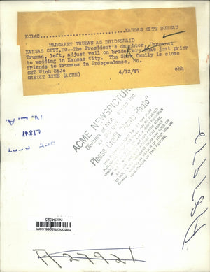 1947 Press Photo President Truman's Daughter Margaret as a Bridesmaid for Friend