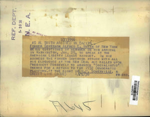 1936 Press Photo Former Governor Alfred Smith of NY with Newsman in Washington