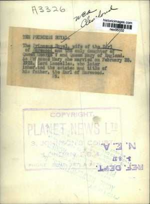 The only daughter of Queen George V and Queen Mary of England, as the Princess Mary, she married on February 28, 1922, Lord Lascelles, who later inherited the estates and title of his father, the Earl of Harewood.