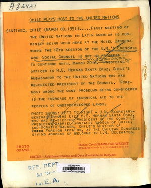 1951 Press Photo UN Economic & Social Counsel Hernana Santa Crus Chile Ambassado