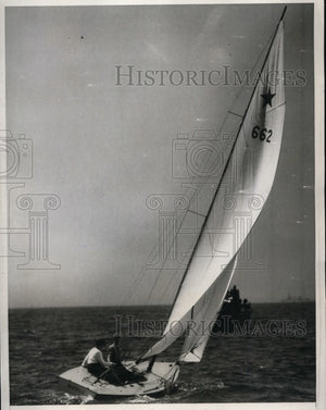 1931 Press Photo Patsy Raskos Age 13 Commanding her Star Boat Ripple in Race