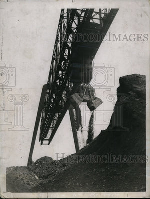 1937 Press Photo Crane Removing Ore from Mountain at Cleveland Docks - nex97063