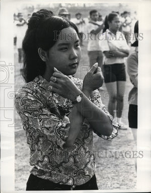 1969 Press Photo High School Student does Calisthenics for Gymnastics Vientiane
