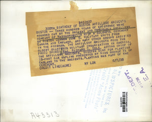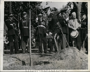 In Boston, three hundred years of existence were rounded out by the Ancient and Honorable Artillery Company of Massachusetts with a colorful ceremony on Boston Common June 6th. Military units from Canada and England, and many other groups assisted in the program. The Artillery ancients form the oldest chartered military organization in America. Shown is Major Richard C. Cole, acting chief of The Artillery Ancients, digging dirt for planting 18-foot oak sapling presented by King George VI of England to the Ancients. Planting was part of the ceremony.