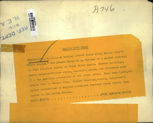 Modern buildings, smart chromium-fronted shops, beautiful parks, and driveways make the avenue a Pan American metropolis of the first order. Modern theatres, running Hollywood's latest productions in English sound, are featured weeks before they appear in the United States.