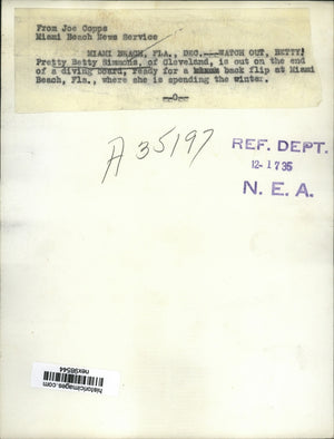 1935 Press Photo Betty Simmons doing back flip dive in Miami Beach Florida