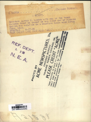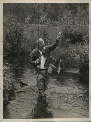 1936 Press Photo Governor Alfred Landon fishing for trout in Colorado