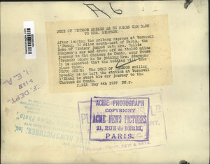 1937 Press Photo Duke of Windsor arrives at Vernouil l'Etang France - nex99598