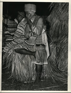 1938 Press Photo Medicine Man Doctor Tiger at Palm Thatched Hut - ney01668