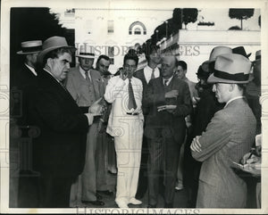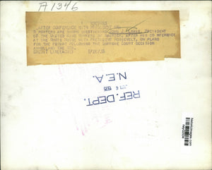 Reporters are shown questioning John J. Lewis, President of the United Mine Workers of America, after his conference at the White House with President Roosevelt, on plans for the future following the Supreme Court decision annulling the NRA.