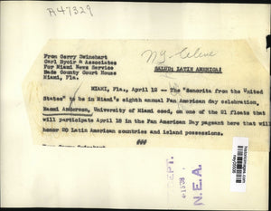 1938 Press Photo Naomi Anderson, Univ of Miami coed, Pan American pageant Miami