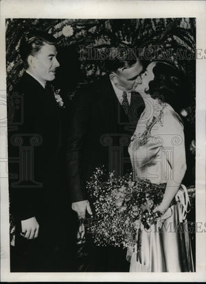 1933 Press Photo Dr EB Troy kisses Mrs FLorence Bown while her groom looks on