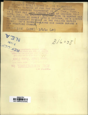1941 Press Photo Chicago John E Zager, youngest bowler warms up for tourney