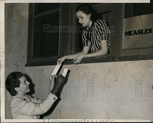1939 Press Photo Mary Agnes Butterfield Sells Ticket for Celebrity Visit for $25