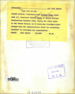 1968 Press Photo President Elect Richard Nixon & US Sec General Thant at UN