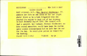 1966 Press Photo Harriet Richheimer After Bomb Blew Up Her Car, New York