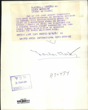 1961 Press Photo Winged Mermaid Clock Statue in London, Built 1910 - ney13847