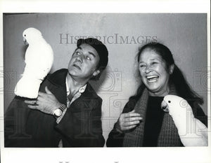 1981 Press Photo Peter Michael Goetz, Colleen Dewburst And A Cockatoo