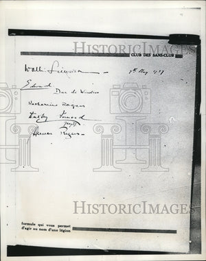 1937 Press Photo Notable Signatures on Visitor's Book at Inn, Tours, France
