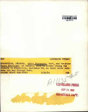 1952 Press Photo Governors Adlai Stevenson, Henry Schricker in Evansville Parade