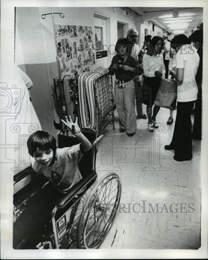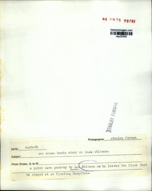 1978 Press Photo Lee Stimson Waves Goodbye at Floating Hospital - ney22455
