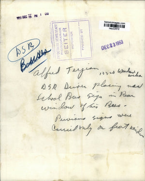 1953 Press Photo Detroit Bus Driver Places "Stop for School Bus" Sign in Window