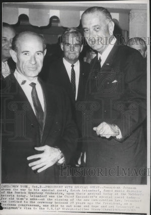 1965 Press Photo Lyndon Johnson w/ Conductor Erich Leinsdorf at Waldorf-Astoria