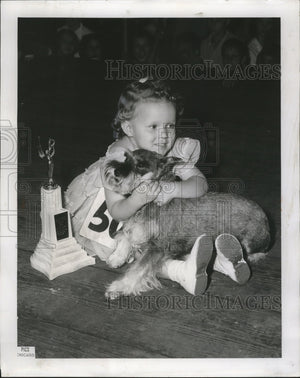 1956 Press Photo Little Kathy Hamaj hugs her winning pet at Chicago Free Fair