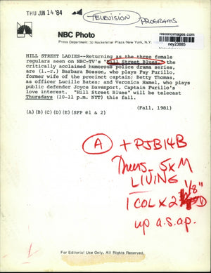 Barbara Bosson, Betty Thomas, Veronica Hamel return to "Hill Street Blues"