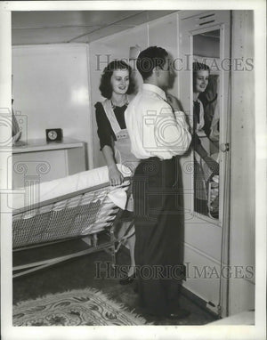 1941 Press Photo Mrs Him Kallin Folds Up Bed White Jim Dresses For Work