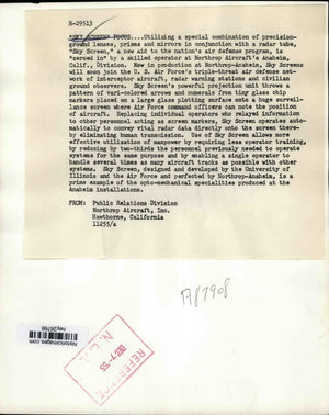 1955 Press Photo Sky Screen Aid in Nations Air Defense Program of Northrop