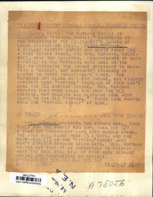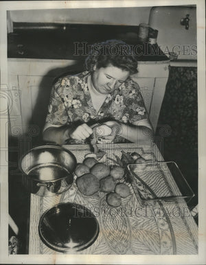 1947 Press Photo Mrs. Kupchik Prepares a Meal on a Budget for Family of 4