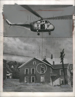 1955 Press Photo Helicopter Rescues Man in Flood - ney27674