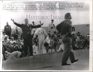 There goes two grand. Mike Souchak walks away from his putter in disgust as he misses short one that would have given him tie for top in Greater Greensboro Open here 4/15. Souchak, defending champ, lost out to Biller Casper by one stroke.