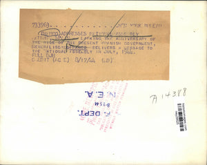 Madrid, Spain - Marking the anniversary of the rise of the present Spanish government, Generalissimo Franco delivers a message to the National Assembly in July, 1944.