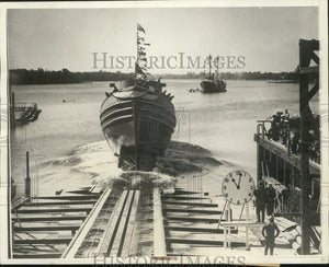 1942 Press Photo Coast Guard Cutter Manitou Launched at Curtis Bay, Maryland