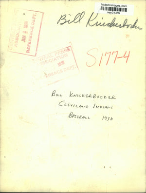 1936 Press Photo Bill Knickerbocker, Cleveland Indians - ney31389