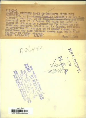 1939 Press Photo Mayor LaGuardia in opposition of removing future tax exemptions
