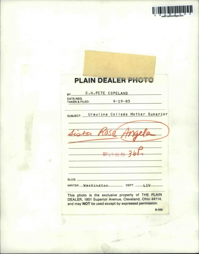 1985 Press Photo Urauline College Mother Superior sister Rose Angela