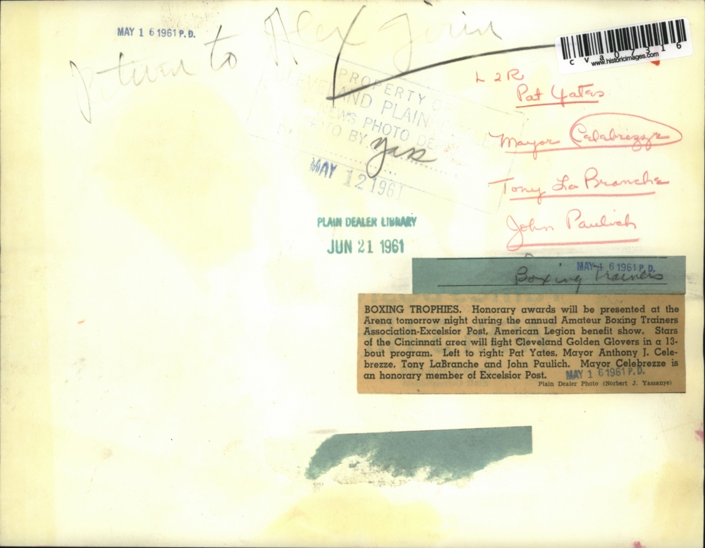1961 Press Photo Boxing Trophies. Honorary awards will be presented at the Arena