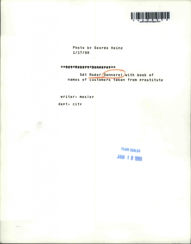 1988 Press Photo Sgt Roger Dennerel with book of names of customers from prostit