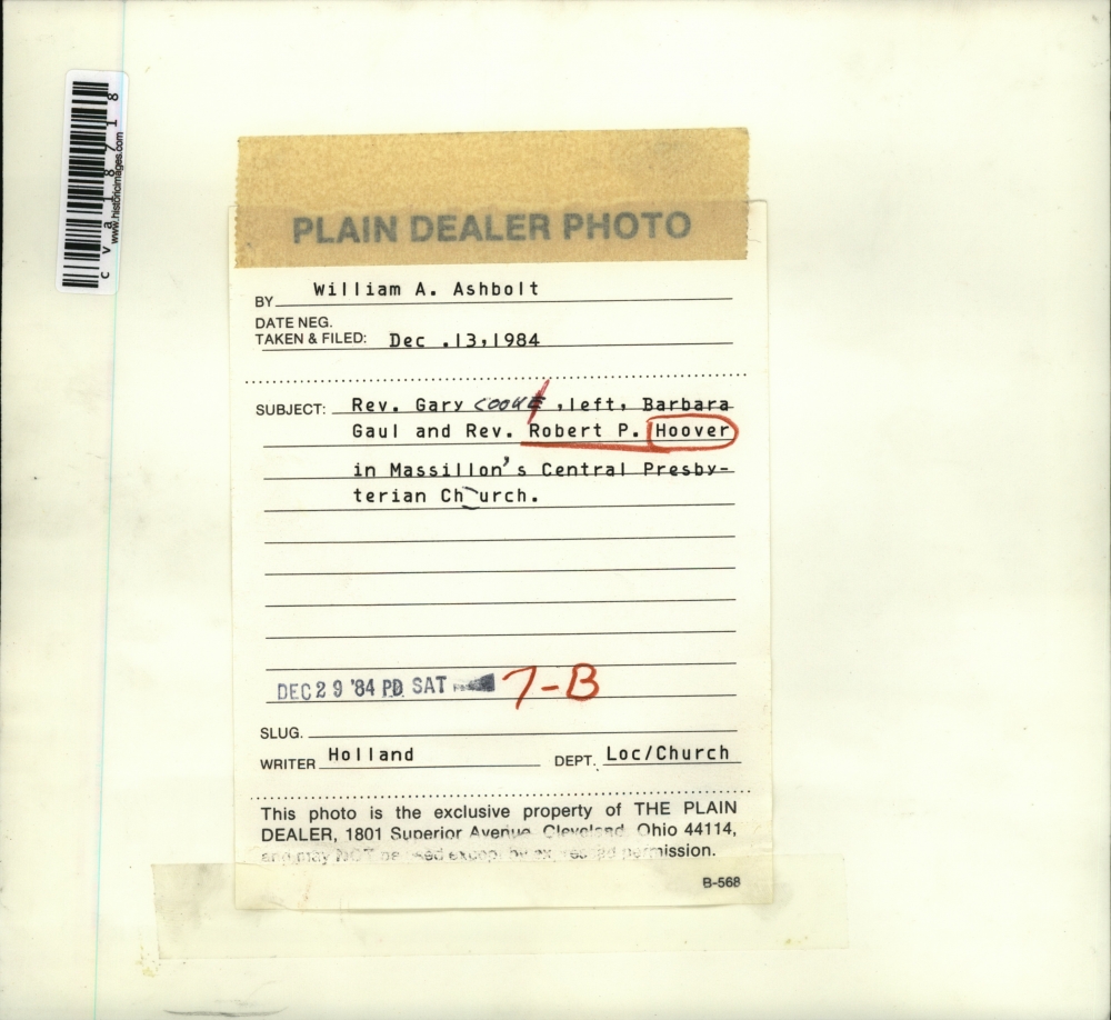 1984 Press Photo Rev.Robert P Hoover at Missillon's Central Presbyterian Church