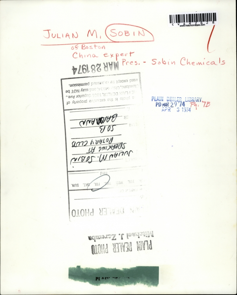 Julian M. Sobin of Boston, China expert, and President Sobin Chemicals.