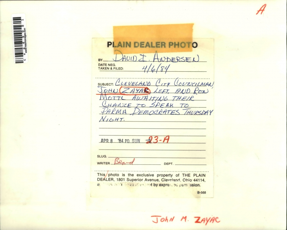 1984 Press Photo John Zayak Cleveland City Council at Parma Democrates Meeting.