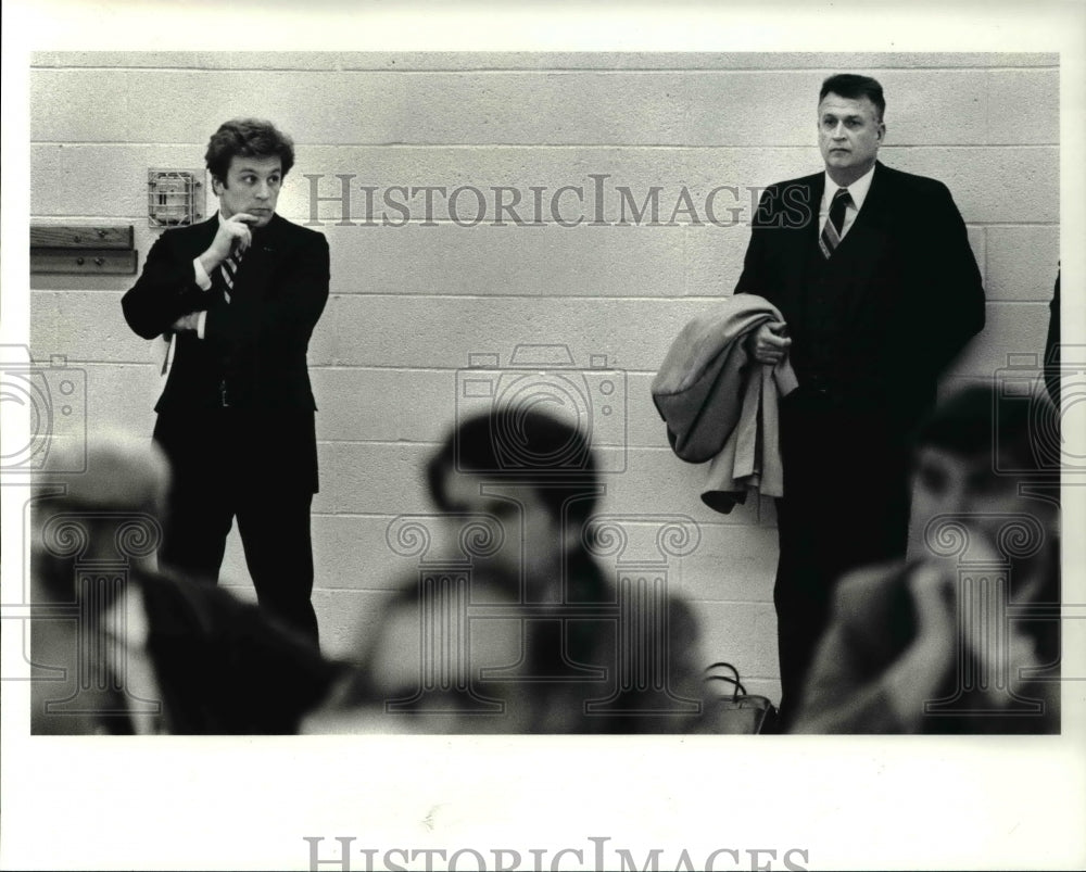 Cleveland City Councilman John Zayak left and Ron Mottl awaiting their chance to speak to Parma Democrates