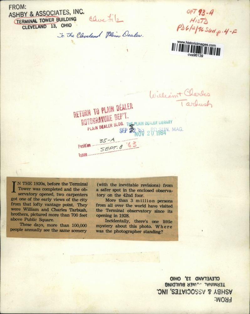 William & Charles Tarbush 700 feet above Public Square before the Terminal Tower completed